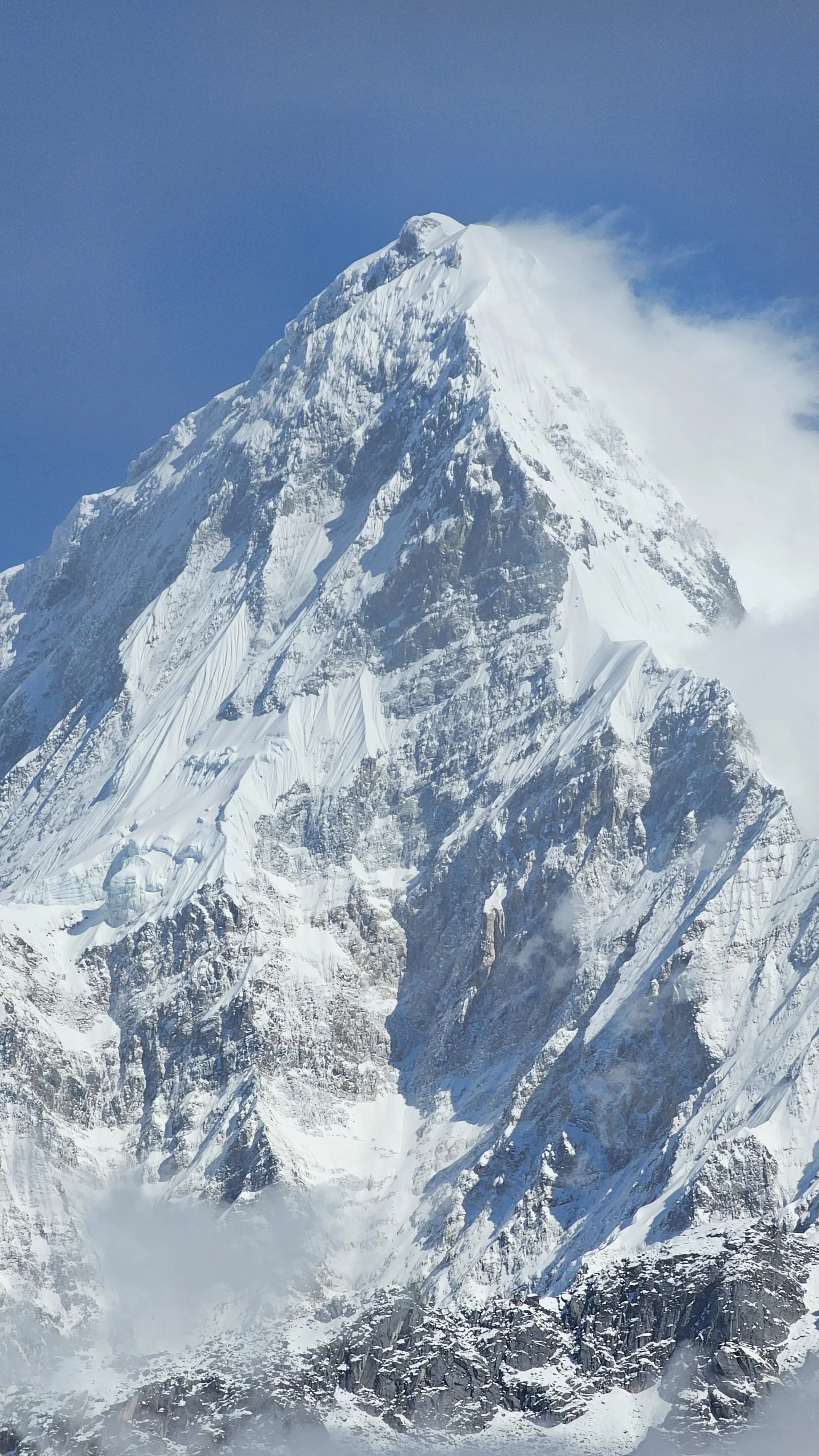 From this ridge, Annapurna South feels closer and more imposing, and the massif reveals itself gradually, peak by peak, in a way that is difficult to experience from elsewhere on the route. The perspective changes not just what you see, but how the landscape unfolds over the days.