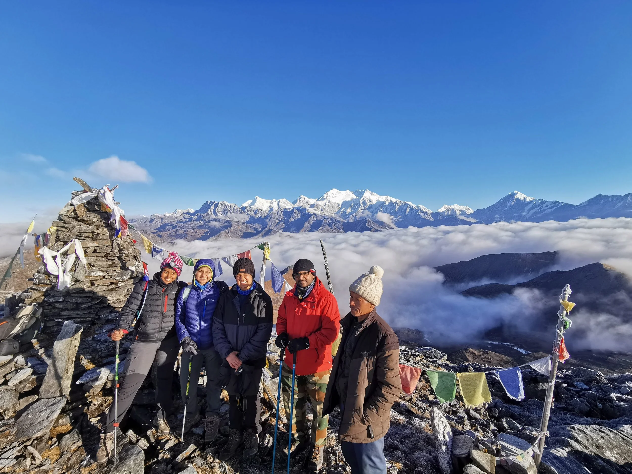 What I appreciate most about this route is how complete it feels. Forest, alpine pasture, and lake basins unfold gradually while Kanchenjunga remains a quiet presence throughout, with sweeping views of the Everest and Makalu massifs appearing across the Nepal skyline. Passing through Pelling on either side of the journey also allows for an easy extension without disrupting the natural rhythm of the trek.